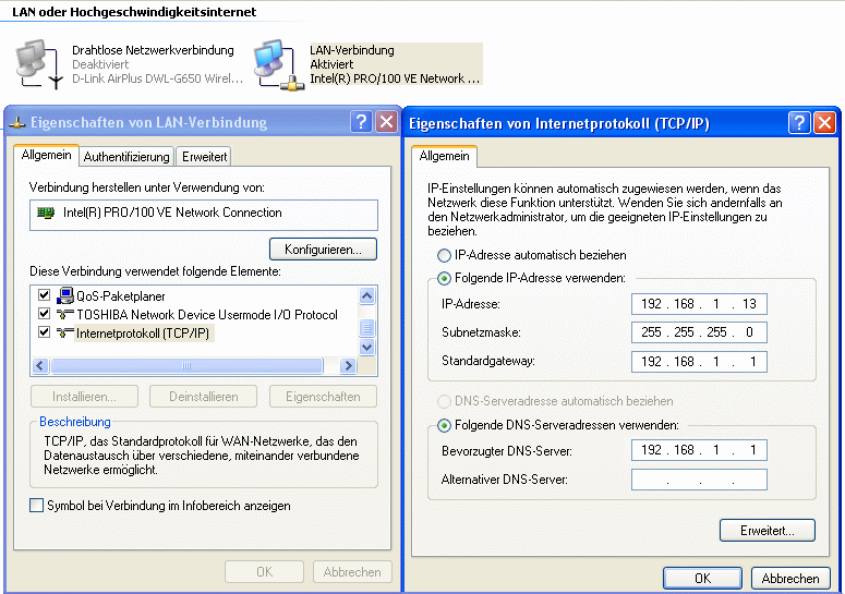 Der Weg zur Einrichtung der LAN-Verbindung bei