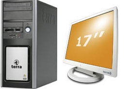| TERRA PC 607 Midi-Tower CPU: Intel® Pentium Dual-Core E2140, 3.2 GHz, 2 MB L2 Cache, FSB 800 MHz, Mainboard: Foxcon RAM: 2 x 512 MB DDR-RAM PC667 (aufrüstbar max. 4 GB) Festplatte: 160 GB S-ATA II 7.200 rpm Optisches Laufwerk: 16x DVD-ROM Sound Realtek ALC 655 6-channel AC'97 Grafik: NVIDIA GeForce 8400GS, 256 MB PCIe, VGA (analog), DVI-I (HDCP), TV-OUT (HDTV), Ports: LAN RTL8100C, RJ-45, 10/100/1000 MBit, 2x USB 2.0 + Audio in Front, 1x seriell, 1x parallel, Multifunktions-Cardreader TERRA Tastatur, Terrra Wheel Maus optical Betriebssystem Windows® XP Home Software: Nero OEM, PowerDVD, Microsoft Office 2007 Ready, Norman Virus Control Plus** Garantie: 24 Monate durch Wortmann AG TFT Terra 17"-TFT Display 1280x1024 Bildpunkte digital/analog Anschluss, Lautsprecher, Helligkeit 300 cd/m2, Kontrast (max.) 700:1, Reaktionszeit 8 ms, H 160° / V 160° Garantie und Service: 36 Monate Garantie mit Vor-Ort-Austausch |